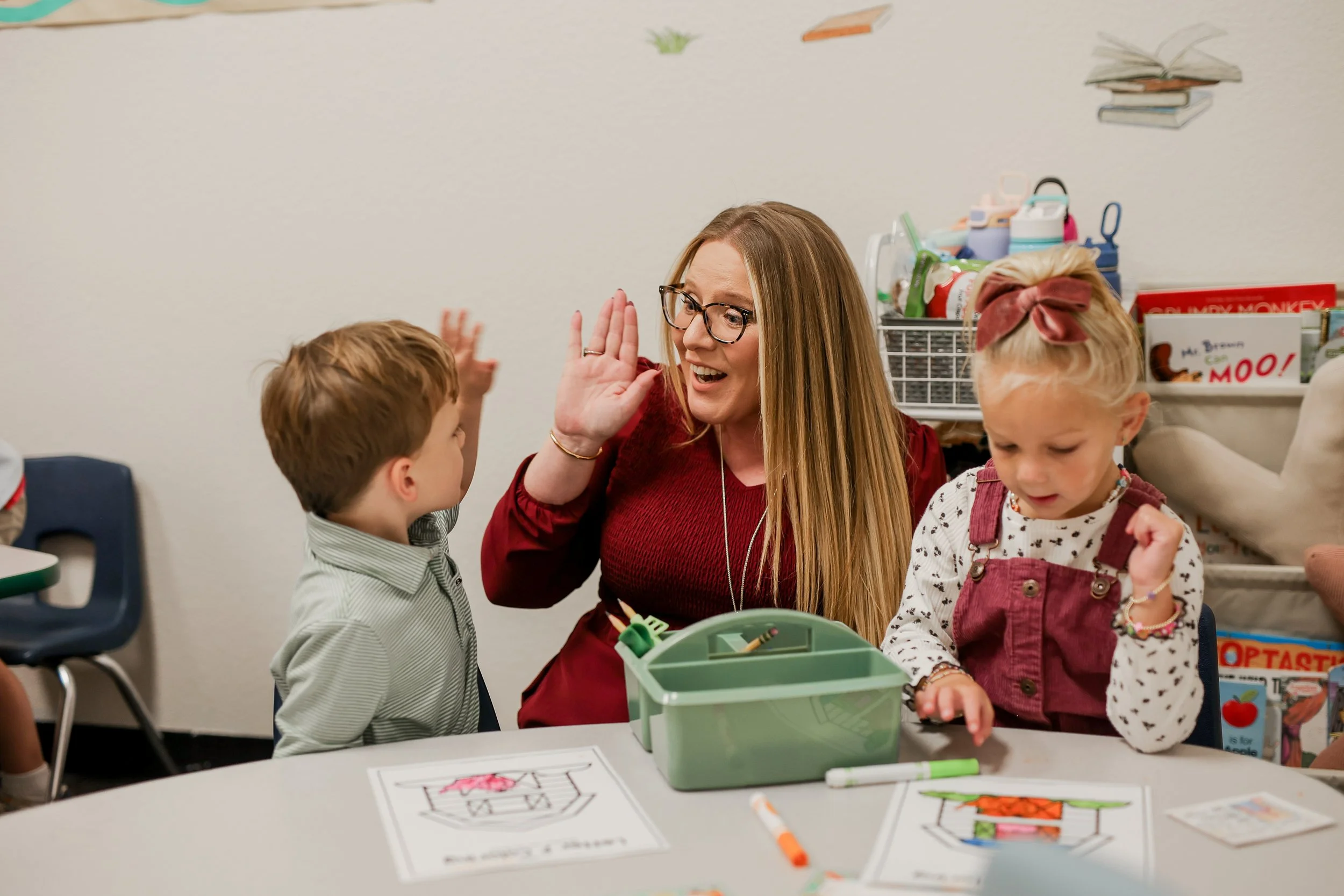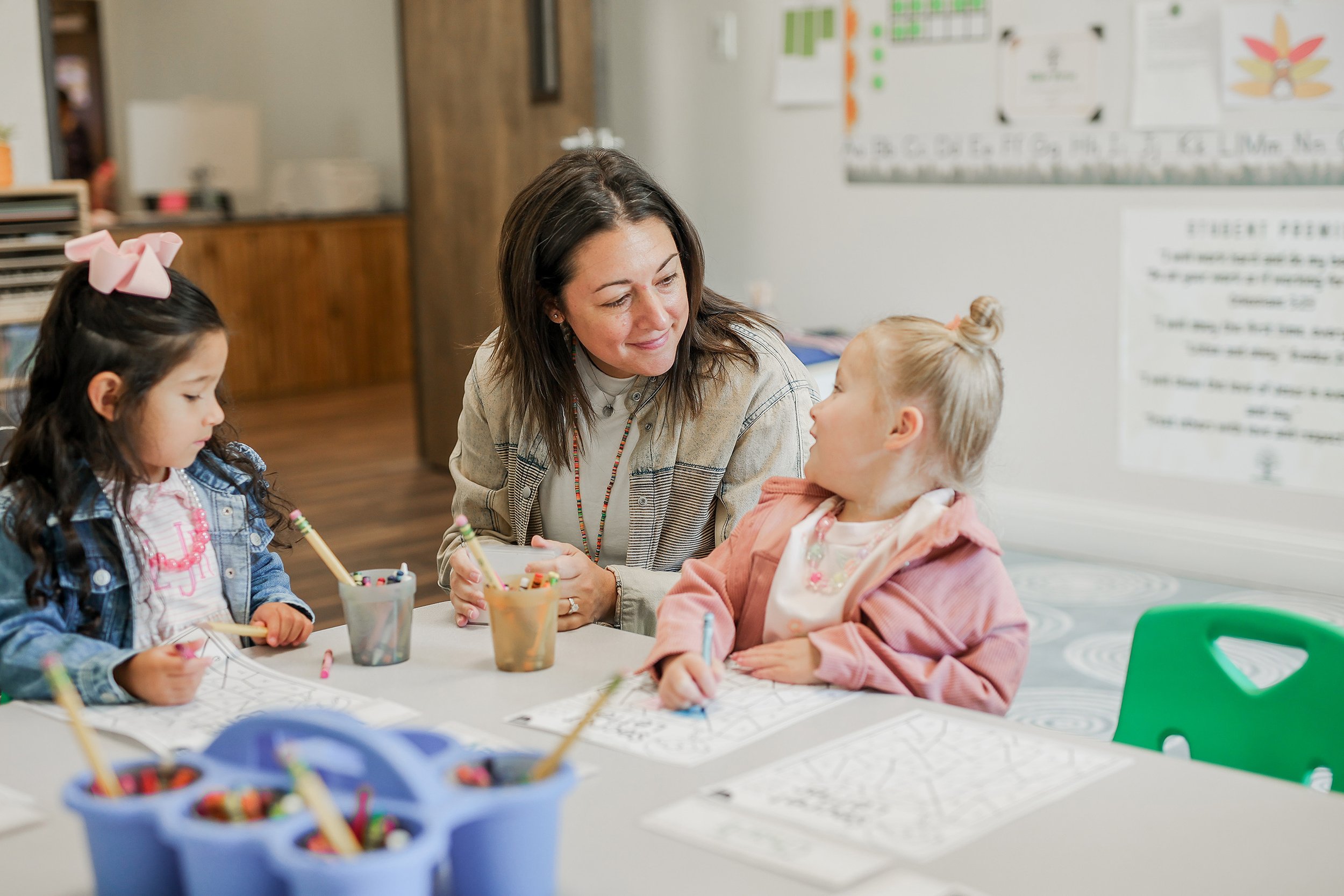 The curriculum is built on proven early-learning strategies: structured phonics and math lessons paired with age-appropriate, play-centered activities. Organized materials and predictable routines let teachers focus on what matters—engaging students and building relationships. Biblical teachings are woven throughout to nurture character, supporting each child's academic, social, and spiritual growth.